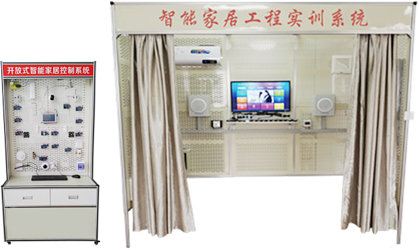 智能家居網(wǎng)板實(shí)訓(xùn)系統(tǒng)主要由環(huán)境感知設(shè)備、安防門禁設(shè)備、控制設(shè)備、視頻監(jiān)控設(shè)備、智能網(wǎng)關(guān)、智能終端、以及鋁合金鋼架結(jié)構(gòu)組成。