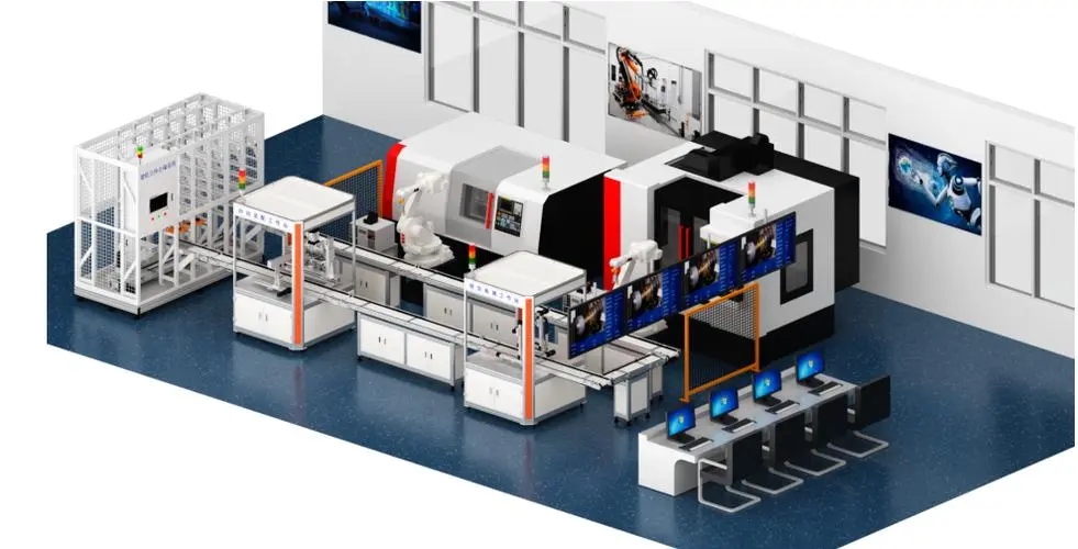 數(shù)控車床加工中心單元用于整個(gè)工件的軸類部份的加工,采用自動(dòng)門(mén)、自動(dòng)裝夾、四工位自動(dòng)刀架、并有工件冷卻加工系統(tǒng),現(xiàn)實(shí)機(jī)加工件無(wú)人化DNC自動(dòng)加工,配置伺服電機(jī)、工業(yè)級(jí)數(shù)控系統(tǒng)。