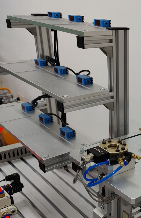 4、立體倉庫:存儲自動裝配工件;倉位數(shù)量:≥3列3層9個;倉位承重:≥2Kg;倉位尺寸:≥100mm×70mm×80mm;外形尺寸:≥350mm×180mm×450mm;工件種類:≥3種9個;工件模塊包括自動裝配母件、子件等。