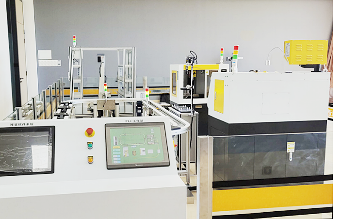 LGY-CX06型 智能制造生產(chǎn)線實訓系統(tǒng)是對工業(yè)現(xiàn)場大型設(shè)備進行提煉和濃縮的一款小型智能制造生產(chǎn)線實訓設(shè)備,專門為職業(yè)院校、教育培訓機構(gòu)等而研制的,它適合機械制造及其自動化、機電一體化、電氣工程及自動化、控制工程、測控技術(shù)、計算機控制、自動化控制等相關(guān)專業(yè)的教學和培訓。融合了數(shù)控機床加工、光、電、氣,包含了PLC、機器人、傳感器、氣動、工業(yè)控制網(wǎng)絡(luò)、電機驅(qū)動與控制、計算機等諸多技術(shù)領(lǐng)域,對柔性制 造技術(shù)的工作過程進行研究,監(jiān)控系統(tǒng)、主控PLC和下位PLC通過網(wǎng)絡(luò)通訊技術(shù)構(gòu)成一個完整的多級計算機控制系統(tǒng),通過訓練,使學生了解智能制造生產(chǎn)線的基本組成和基本原理,讓學生全面掌握機電一體化技術(shù)的應(yīng)用開發(fā)和集成技術(shù),幫助學生從系統(tǒng)整體角度去認識。為信息學院自動化和電氣工程自動化本科及其控制科學與工程研究生均提供了實驗和科研的平臺。