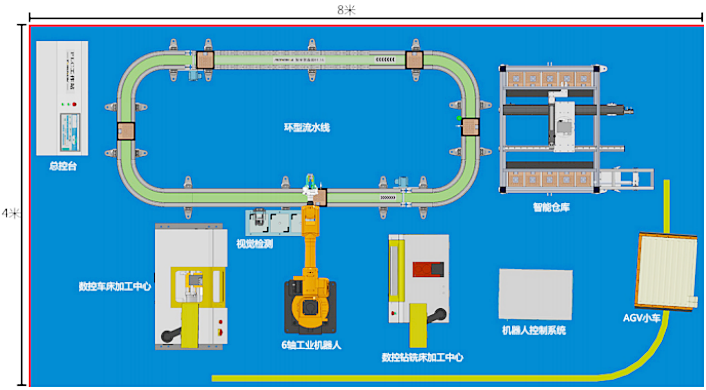 環(huán)型流水線根據(jù)實際工廠生產(chǎn)過程中流水線物料循環(huán),完成整個流水線的產(chǎn)品的整體循環(huán)流動。