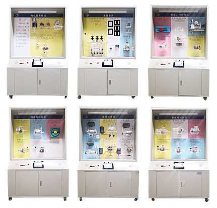 CLG-104型《電機與變壓器》示教陳列柜(CD解說)是根據(jù)大、中專院校,按《電力學(xué)》、《電力拖動》、電機控制》、《電機修理》等教材設(shè)計一套電化設(shè)備,品種多,功能齊全,學(xué)生可根據(jù)教材需要觀察、分析,大大提高分析電機原理的能力,本陳列柜共分6柜及一臺電腦解說控制臺。有第一代和第二代兩種形式。模型采用遙控任意選擇進行單獨演示,模型外殼材料采用進口有機板硅鋼片制作而成,板面面板采用圖表和文字說明直接制作在上面。演示形象逼真,運行可靠,工藝美觀,使用本陳列柜可提高教學(xué)效果,節(jié)約學(xué)時是一套現(xiàn)代化機械課程教學(xué)實用設(shè)備。