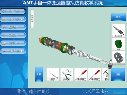 AMT手自一體變速箱虛擬仿真教學(xué)軟件是以AMT手自一提變速箱的實物為基礎(chǔ),結(jié)合它的結(jié)構(gòu)、工作原理等進行研發(fā)的汽車教學(xué)軟件,用于汽車AMT手自一提變速箱的教學(xué)與培訓(xùn),讓學(xué)生更加深入了解AMT手自一提變速箱的工作與結(jié)構(gòu)等,為社會提供精英人才。