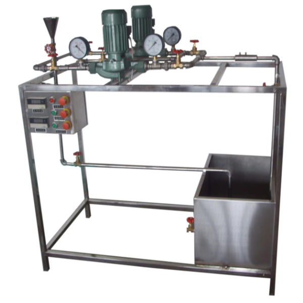 離心泵、蓄水箱、文丘里流量計(jì)、壓力表、U型壓差計(jì)、單相功率表、玻璃溫度計(jì)、實(shí)驗(yàn)管道、閥門、自循環(huán)裝置、不銹鋼框架。