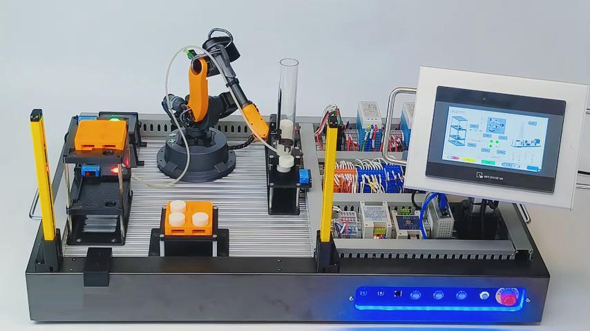 1、LG-JQRSX型 機(jī)器人PLC實(shí)訓(xùn)工作站工件搬運(yùn)、分揀、組裝是自動(dòng)化生產(chǎn)中最典型的機(jī)器人應(yīng)用場(chǎng)景之一。機(jī)器人PLC實(shí)訓(xùn)工作站融合了工業(yè)機(jī)器人、智能傳感器、PLC編程、人機(jī)交互組態(tài)屏等技術(shù)元素,以模擬工件搬運(yùn)為基礎(chǔ),打造“自動(dòng)化送料-智能檢測(cè)-自動(dòng)化分揀-人機(jī)交互”一體化實(shí)訓(xùn)平臺(tái)。