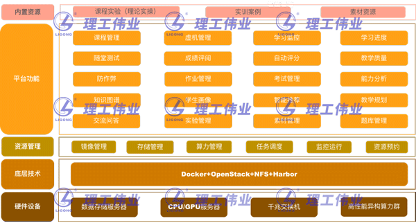 在教學(xué)方式上,提供了一站式教學(xué)服務(wù),可滿(mǎn)足用戶(hù)備課、授課、課堂互動(dòng)、課后作業(yè)、課程考核、實(shí)訓(xùn)拓展、教學(xué)考試和教學(xué)分析全過(guò)程教學(xué),并且針對(duì)不同學(xué)習(xí)程度的用戶(hù)定制打造實(shí)驗(yàn)學(xué)習(xí)環(huán)境和課程體系,讓教學(xué)更簡(jiǎn)單,更高效。