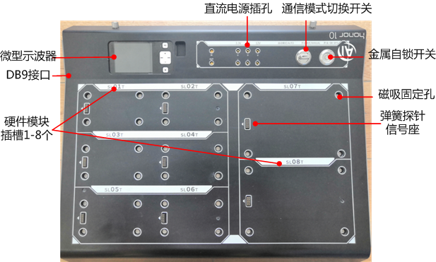 通用基礎(chǔ)平臺(tái)由平臺(tái)基座與垂直網(wǎng)板組成,符合人體工學(xué)設(shè)計(jì)?;_模設(shè)計(jì),采用ABS材料,表面光滑,有質(zhì)感,有對(duì)應(yīng)絲印圖,美觀,大氣;基座具有DB9通信接口,3.3V/5V/12V電源插孔,通信選擇開關(guān)、總電源自鎖開關(guān);內(nèi)嵌微型示波器,可完成電路供電測(cè)試及工作過(guò)程關(guān)鍵點(diǎn)測(cè)試,能夠在電路原理學(xué)習(xí)基礎(chǔ)上完成實(shí)踐中的驗(yàn)證測(cè)試,達(dá)到理實(shí)一體效果;具有8個(gè)SLOT插槽,磁吸固定孔,彈簧頂針管腳,可與硬件模塊磁性吸合,頂針連接,完成供電、RS485、RS232等標(biāo)準(zhǔn)總線通信。硬件模塊任意組合,支持各種場(chǎng)景應(yīng)用,每個(gè)模塊都有通信地址和硬件電路測(cè)試點(diǎn),讓學(xué)生不僅懂得硬件電路原理,還可使用示波器測(cè)試硬件電路工作的瞬態(tài)過(guò)程。垂直網(wǎng)板是金屬網(wǎng)孔板,能磁吸或螺絲固定商用設(shè)備,用于用戶實(shí)驗(yàn)拓展。
