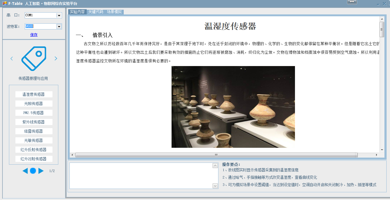 在C#軟件上有每一個(gè)教學(xué)實(shí)驗(yàn)資源,包含實(shí)驗(yàn)?zāi)康?,?shí)驗(yàn)原理,實(shí)驗(yàn)內(nèi)容,實(shí)驗(yàn)步驟,實(shí)驗(yàn)過(guò)程,實(shí)驗(yàn)現(xiàn)象以及對(duì)應(yīng)場(chǎng)景應(yīng)用,能夠讓學(xué)生不僅學(xué)習(xí)傳感器概念,原理,開發(fā),還能學(xué)以致用。