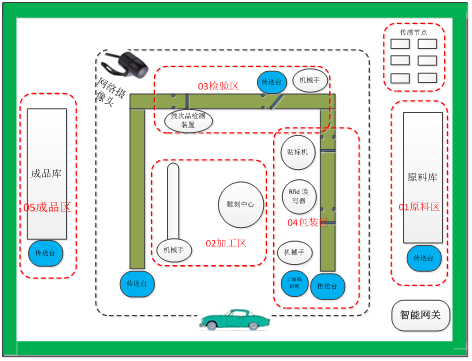 系統(tǒng)按功能劃分,包含8個小系統(tǒng),分別是信息管理系統(tǒng)、立體倉庫系統(tǒng),AGV小車運輸系統(tǒng),工業(yè)機器臂控制系統(tǒng)、流水線控制系統(tǒng)、機器視覺分揀系統(tǒng)、RFID二維碼識別系統(tǒng)、以及無線通信技術。