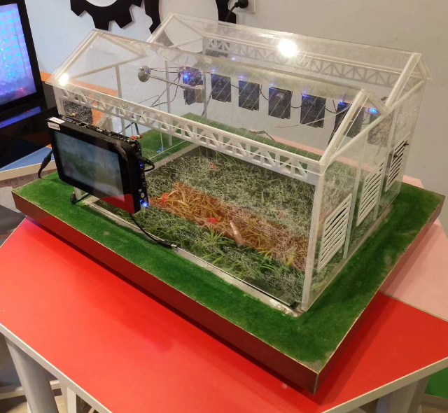 LGWL-NY05型 智慧農(nóng)業(yè)沙盤實(shí)訓(xùn)系統(tǒng)(參考尺寸(可定制):120cm×80cm×80cm),通過采集大棚內(nèi)空氣溫濕度、光照度、土壤濕度、二氧化碳濃度等數(shù)據(jù)信息,經(jīng)過WiFi組網(wǎng)到網(wǎng)關(guān)、網(wǎng)關(guān)通過以太網(wǎng)或4G網(wǎng)絡(luò)傳送給云服務(wù)平臺(tái),經(jīng)過分析處理,通過WEB頁面展示農(nóng)業(yè)生產(chǎn)環(huán)境的數(shù)據(jù)信息,控制加濕器、通風(fēng)扇、補(bǔ)光燈、遮陽簾、點(diǎn)陣屏等執(zhí)行器的工作狀態(tài)。同時(shí),系統(tǒng)支持視頻采集,用戶可通過物聯(lián)網(wǎng)網(wǎng)關(guān)、WEB監(jiān)控平臺(tái)、移動(dòng)端近場或遠(yuǎn)程視頻瀏覽大棚的實(shí)時(shí)狀況。系統(tǒng)支持用戶自定義控制決策,實(shí)現(xiàn)農(nóng)業(yè)生產(chǎn)環(huán)境的自動(dòng)調(diào)節(jié),達(dá)到促進(jìn)作物生長的目的。
