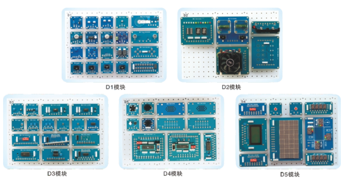 本設(shè)備是將實際應(yīng)用中單元電路模塊化。學(xué)生通過模塊間的搭接,很方便就能搭建成各種實際產(chǎn)品,模塊搭成產(chǎn)品的范圍涉及家電,工業(yè),無線等方面內(nèi)容。單元模塊電路包括傳感器,信號處理,顯示,執(zhí)行本體,接口電路,微處理器等模塊。模塊都采用透明盒裝配,模塊間采用排插和接線柱連接,使實訓(xùn)模塊能夠靈活按教學(xué)要求或競賽要求搭建成各種實際產(chǎn)品。