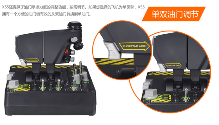 民航:塞斯納YOKE搖桿、腳跺、飛行儀表裝置等 戰(zhàn)斗機:套賽鈦客X-55(左手油門桿、搖桿) |
