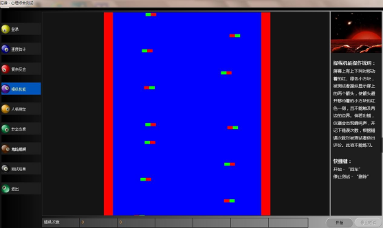 3.操作技能測(cè)試:用來(lái)檢測(cè)人對(duì)刺激信號(hào)的注意力分配和動(dòng)作協(xié)調(diào)能力。