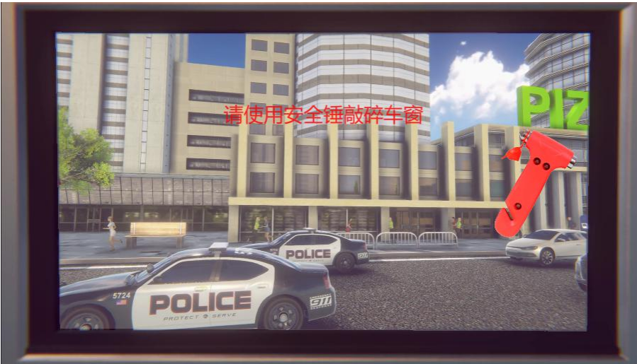 軟件內(nèi)容:模擬一段城市背景道路,有公交車站臺,大小車輛,車輛交匯,行人等,模擬公交車在街道上行駛,在路口轉(zhuǎn)彎時配有語音提示“車輛轉(zhuǎn)彎,請扶好扶手”,車廂內(nèi)搭載視頻(播報公交車相關逃生畫面)播放完畢后若干秒,前方道路出現(xiàn)模擬油罐車迎面相撞,(伴隨車身較強撞擊感抖動),隨后畫面內(nèi)油罐車體側(cè)翻著火。然后,模擬車廂著火后,車內(nèi)講解引導逃生流程,駕駛員應開啟車門,令乘客從車門下車。然后,模擬汽車車廂著火,駕駛員打開車門,讓乘客從兩頭車門有秩序地下車。乘客們可用衣物蒙住頭部,從車門沖下。模擬車門被火燒壞,開啟不了,乘客在則面一塊屏上模擬操作安全錘擊打車窗的模擬操作。車窗有模擬碎裂感(視頻特效),乘客模擬砸開側(cè)面車窗逃生。體驗了上述驚險過程,掌握逃生技巧,了解逃生知識,當火災發(fā)生時要冷靜處理,科學逃生。