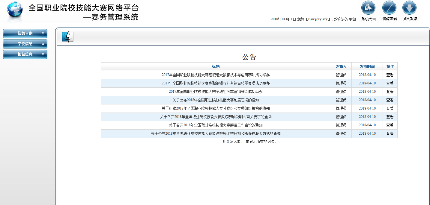 點擊“查看”按鈕,可進(jìn)入公告查看頁面,如圖:3-6-2: