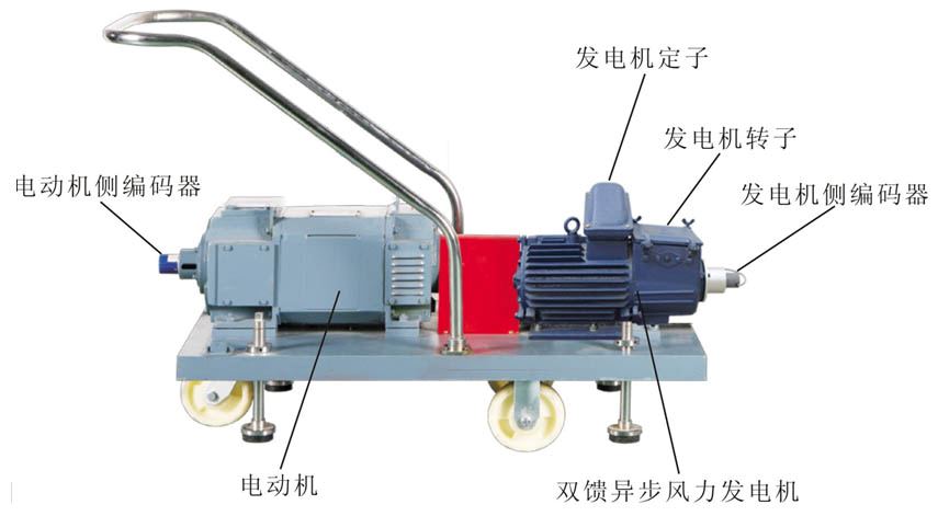 發(fā)電機(jī)組由直流電動(dòng)機(jī)、雙饋異步風(fēng)力發(fā)電機(jī)、轉(zhuǎn)速傳感器、機(jī)組固定底盤(pán)及配套件等構(gòu)成。