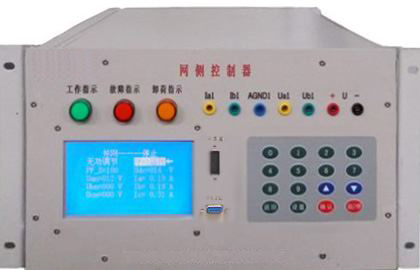 網(wǎng)側(cè)控制器面板安裝有三個(gè)信號(hào)指示燈,16鍵PVC軟鍵盤(pán),240*128點(diǎn)蘭色液晶屏及7個(gè)波形測(cè)試端子。信號(hào)指示燈可對(duì)控制器工作、故障、卸荷狀態(tài)分別給于指示,通過(guò)鍵盤(pán)可完成并網(wǎng)啟動(dòng)/停止設(shè)置。液晶屏可完成三相電流,電壓有效值顯示,直流母線(xiàn)電壓顯示;面板觀(guān)測(cè)孔可觀(guān)測(cè)電網(wǎng)相電流波形、相電壓波形及直流母線(xiàn)電壓波形。