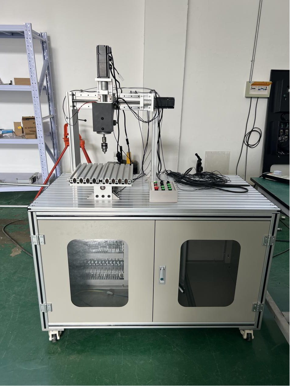 4、實訓裝置雕刻機部分的實訓桌面及其支撐腳、 電控柜主體框架全部采用優(yōu)質(zhì)標準鋁型材加工制作,機械強度好、重量輕、美觀大方,持久耐用。