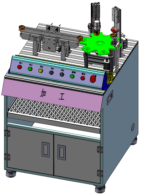 加工單元由傳輸線、加工站、轉(zhuǎn)盤機(jī)構(gòu)等組成。完成物料加工、檢測及輸送等功能。