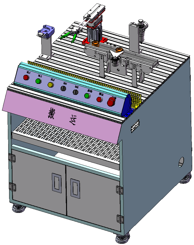 7、電源控制盒:尺寸600mm×100mm×100mm,面板上設(shè)有總急停按鈕、斷路器帶保險(xiǎn)絲、指示燈、鑰匙開關(guān)、啟動(dòng)、停止以及急停按鈕,整體設(shè)計(jì)成獨(dú)立模塊,外殼采用專用C型鋁合金型材,兩端采用鈑金件固定。