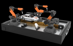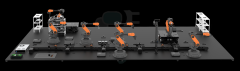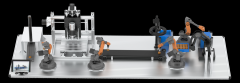 一、產(chǎn)品描述 1、★產(chǎn)線模擬還原汽車生產(chǎn)過程中的拼接、焊接、質(zhì)量檢測(cè)、打磨、轉(zhuǎn)運(yùn)等流程(具體流程為1#機(jī)械臂將車體模型搬運(yùn)至輸送平臺(tái),平臺(tái)將車模輸送至2#位置...