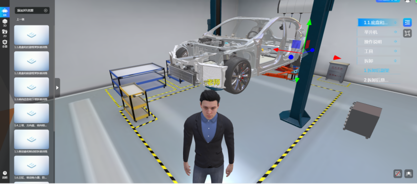 一、產(chǎn)品概述 汽車底盤拆裝仿真教學(xué)軟件是一款基于汽車底盤構(gòu)造與維修,開發(fā)的仿真教學(xué)軟件。利用仿真技術(shù)模擬實際的汽車底盤的拆裝過程,主要包括:左前制動系...LGE-ZC012型 新能源整車理實一體實訓(xùn)臺