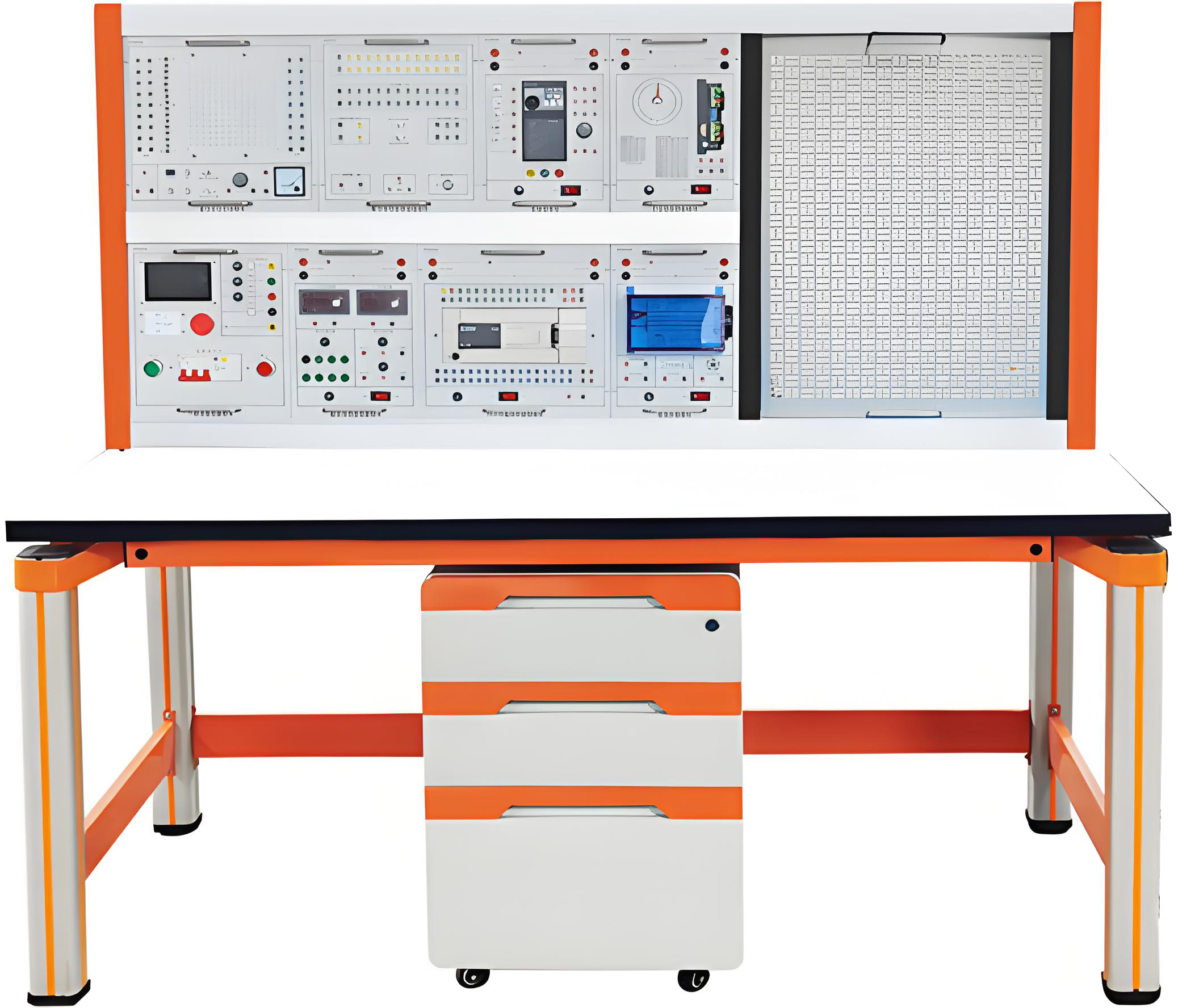 1、采用網(wǎng)孔板結(jié)構(gòu),實(shí)訓(xùn)方法靈活,接近工業(yè)現(xiàn)場(chǎng),可增加元器件增加實(shí)訓(xùn)內(nèi)容,便于二次開發(fā)及功能擴(kuò)展。