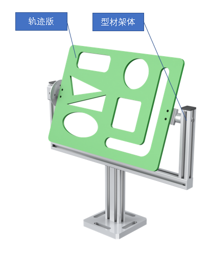 2D軌跡訓(xùn)練單元是將協(xié)作機(jī)器人對產(chǎn)品裝配前的涂膠工藝進(jìn)行功能抽象化,協(xié)作機(jī)器人抓持涂膠工具沿軌跡板上不同輪廓軌跡運(yùn)動,模擬涂膠工藝,軌跡板角度可調(diào),保證工藝真實(shí)性同時(shí)增加教學(xué)可行性和趣味性。配備發(fā)動機(jī)模擬蓋板組件,實(shí)現(xiàn)定點(diǎn)位置處的軌跡訓(xùn)練如圖所示