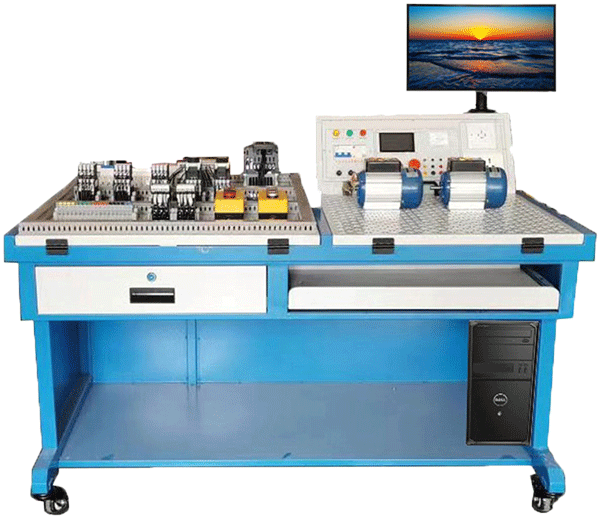 設備由實訓屏(內置電源)、實訓桌(含鍵盤)、儲物柜三大部分組成。鋼制表面經高溫噴塑處理,美觀大方且有效起到防銹絕緣的作用;電源箱的布局依次為電源保護裝置、電源指示裝置、電源輸出;實訓桌左側安裝有角度可以調節(jié)的嵌入式的考核平臺1張,所有元器件均采用端子引出,學生接線只需在端子上進行接線,可以有效的保護元器件,轉接端子采用接插兩用端子排,方便與元器件和實訓電源屏的連接,右側裝有網孔板一塊,角度可調嵌入式安裝;實驗桌底部裝有至少4個導向輪,方便設備移動;儲物柜采用標準結構和抽屜式,用于存放工具以及實訓資料。電腦通過可調節(jié)電腦支架安裝于電源屏的上方。