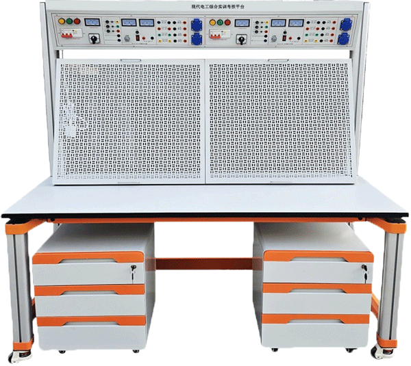 現(xiàn)代電工綜合實(shí)訓(xùn)考核實(shí)訓(xùn)臺(tái)由實(shí)訓(xùn)屏(內(nèi)置電源)、實(shí)訓(xùn)桌、實(shí)訓(xùn)儲(chǔ)物柜三大部分組成。