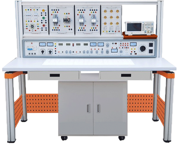電工實(shí)驗(yàn)臺(tái),電工技術(shù)綜合實(shí)驗(yàn)裝置,通過(guò)實(shí)驗(yàn)教學(xué),使學(xué)生掌握電工技術(shù)方面的基本知識(shí)與技能,培養(yǎng)學(xué)生實(shí)際操作能力和應(yīng)用技能、培養(yǎng)學(xué)生分析和解決問(wèn)題的基本能力,為后續(xù)專業(yè)課程打好基礎(chǔ)。電工實(shí)驗(yàn)臺(tái)具有較完善的安全保護(hù)措施,較齊全的功能(詳見(jiàn)實(shí)驗(yàn)臺(tái)結(jié)構(gòu)簡(jiǎn)介)。實(shí)驗(yàn)桌中央配有通用九孔萬(wàn)能插件板,九孔萬(wàn)能插件板主體由ABS注塑而成,表面布有九孔成一組相互聯(lián)通的插孔,九孔萬(wàn)能插件板內(nèi)部?jī)?nèi)嵌126組銅質(zhì)九孔一體成型嵌件。實(shí)驗(yàn)中的弱電模塊必須以獨(dú)立封裝的透明元件盒為單一模塊,元件盒統(tǒng)一都能配合九孔萬(wàn)能插件板像搭積木一樣的形式自由搭建組合電路,元件盒盒體透明,內(nèi)裝元件直觀性好,盒蓋印刷電路圖防刮耐磨,符號(hào)美觀清晰。元件盒盒體與盒蓋采用較科學(xué)的壓卡式結(jié)構(gòu),維修拆裝方便。元器件放置在實(shí)驗(yàn)桌下邊儲(chǔ)存柜內(nèi),大大提高了管理水平,規(guī)劃化程度,大大減輕了教師實(shí)驗(yàn)準(zhǔn)備工作。