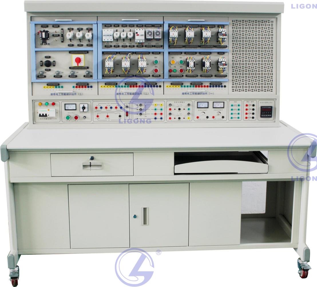 LGWX-082型 中級維修電工實訓考核裝置采用國際常用的模塊化設計,根據不同的實訓考核內容配置相應的實訓模塊,實訓方便、布局合理、易于擴展升級,實訓內容涵蓋電工儀表、電工接線工藝、電子電路、電工照明配電、電力拖動、PLC綜合訓練、觸電急救、安全消防等,符合初、中級電工國家職業(yè)標準教、培、考的要求,適應各職業(yè)學校、技工學校、中專學校、勞動培訓及技能鑒定機構等單位的教學培訓、實訓考核、技能鑒定。