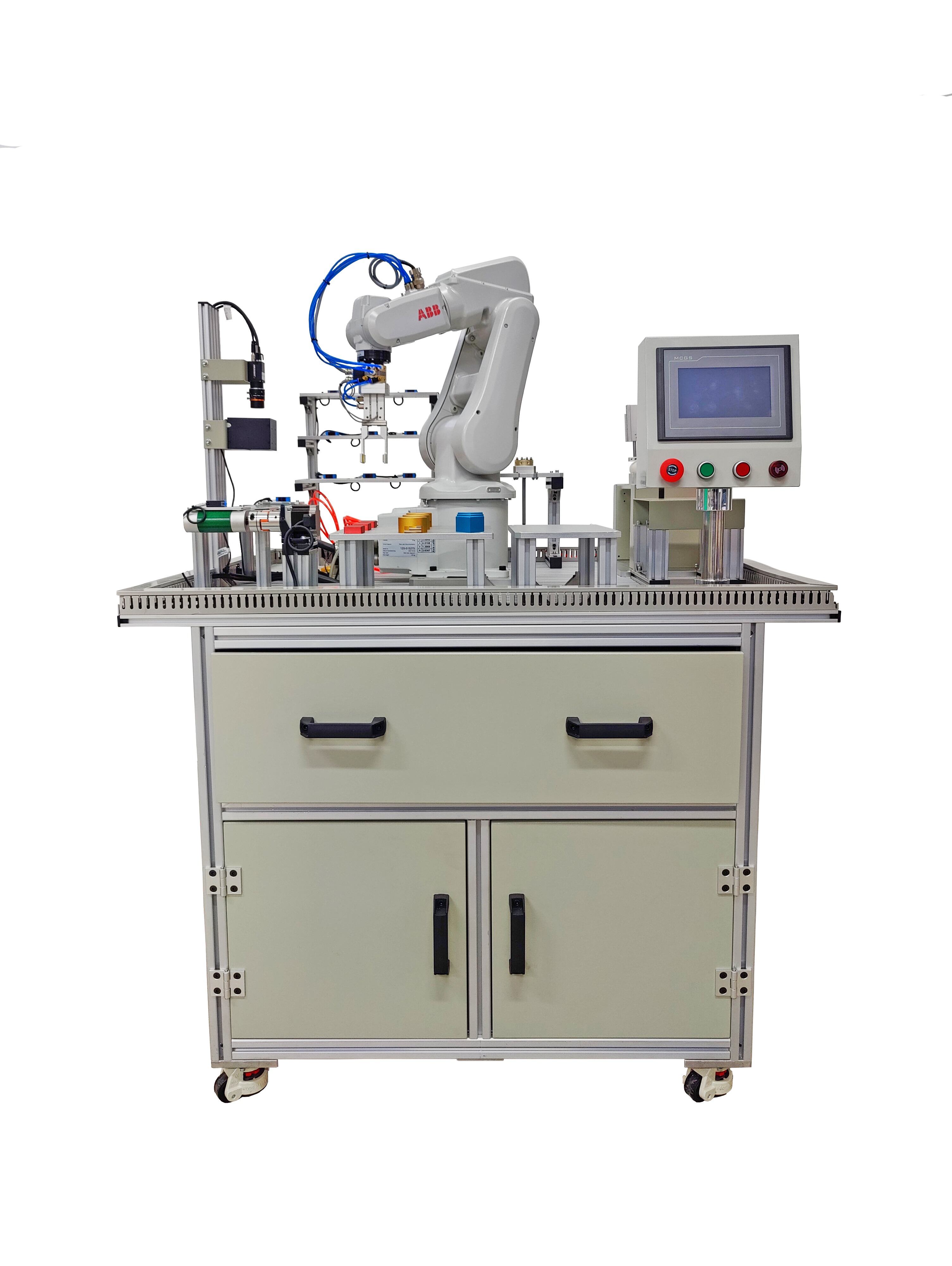 一款完全應(yīng)用工業(yè)以太網(wǎng)技術(shù)、集成多種工業(yè)機(jī)器人應(yīng)用場(chǎng)景的模塊化教學(xué)設(shè)備。