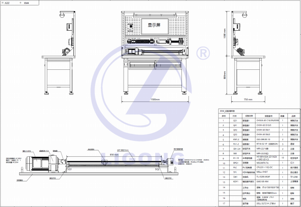 臺(tái)面尺寸 1500*800*780(寬*深*高),上部設(shè)置試驗(yàn)裝置安裝屏高 1000 ,總重量 約 110KG。