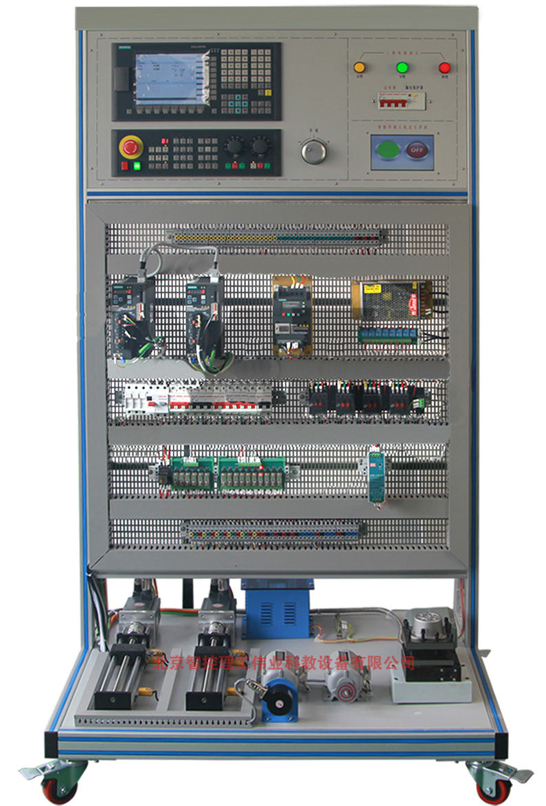 (1)電氣控制平臺(tái)采用鋁合金型材、網(wǎng)孔板開(kāi)放式設(shè)計(jì),立式結(jié)構(gòu),符合真實(shí)的數(shù)控電氣安裝環(huán)境,主要由數(shù)控系統(tǒng)、進(jìn)給驅(qū)動(dòng)、主軸單元、PMC單元、刀架控制電路、冷卻控制電路、接口單元、保護(hù)電路、電源電路等組成。該單元包含完整的數(shù)控車床電氣控制部分,以及接口轉(zhuǎn)換單元。