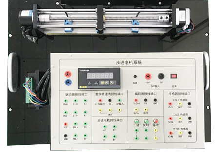 LGBJ-M01型 步進電機實訓模型組成:采用步進電機、驅(qū)動器、小車及絲杠、接線盒、旋轉(zhuǎn)編碼器、脈沖計數(shù)表、接近開關(guān)等組成。其中旋轉(zhuǎn)編碼器用來做閉環(huán)控制,脈沖計數(shù)表用來顯示脈沖個數(shù),讓實驗看起來更直觀。接線盒端子都使用弱電,確保了使用者人身安全。