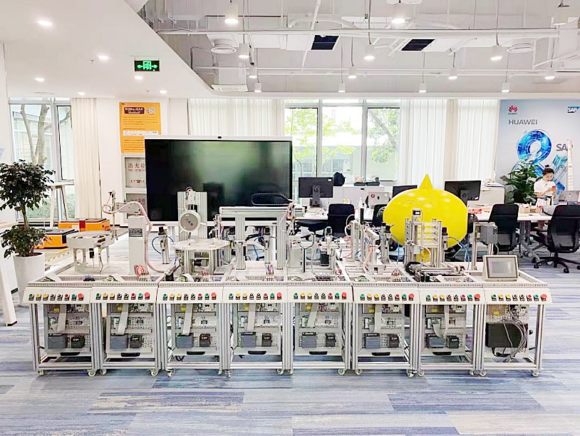 LG-MPS02A型模塊式柔性自動化生產(chǎn)線實訓系統(tǒng)(八站)是一種典型的機電一體化、自動化類產(chǎn)品,它是為職業(yè)院校、教育培訓機構等而研制的,它適合機械制造及其自動化、機電一體化、電氣工程及自動化、控制工程、測控技術、計算機控制、自動化控制等相關專業(yè)的教學和培訓。它接近工業(yè)生產(chǎn)制造現(xiàn)場基礎上雙針對實訓教學進行了專門設計,強化了各種控制和工程實踐能力。系統(tǒng)包含了機電一體化專業(yè)中的氣動、電機驅(qū)動與控制、PLC、變頻器、觸摸屏、傳感器等多種控制技術,適合相關專業(yè)學生進行工程實踐、課程設計及初上崗位的工程技術人員進行培訓。