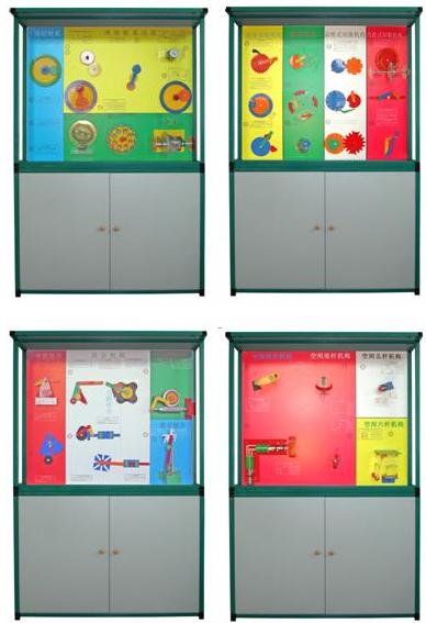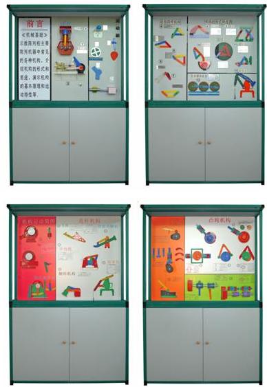 本設備是根據(jù)大中專院校、職業(yè)學校的教學大綱設計的機械陳列柜,《機械基礎》電化教學設備。陳列柜共分十個柜和一個電腦控制臺,進行多媒體聲控同步解說演示。由PC機電腦控制順序或任選運行每個柜模型動作,同時電腦播放圖像或三維動畫同步模型動作。