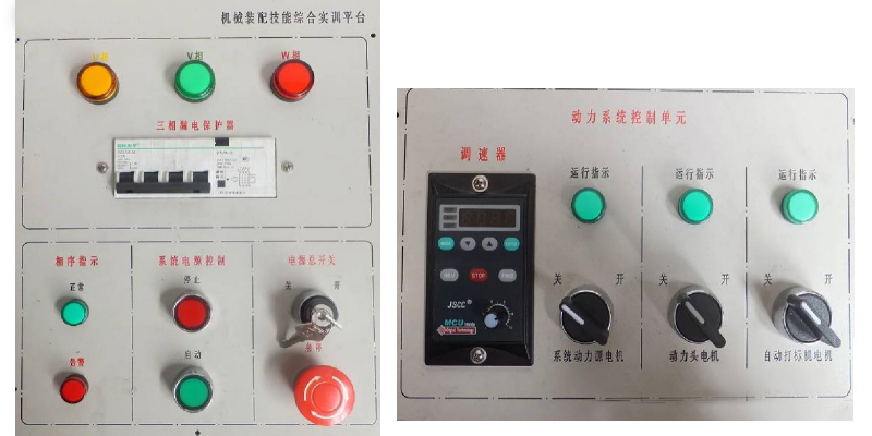 總電源控制單元主要由三相漏電保護器、三相電源指示(U 相、V 相、W 相)、相序指示燈、 系統(tǒng)電源控制按鈕(停止與啟動按鈕)、電源總開關(鑰匙開關)、急停按鈕等組成。