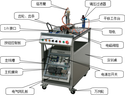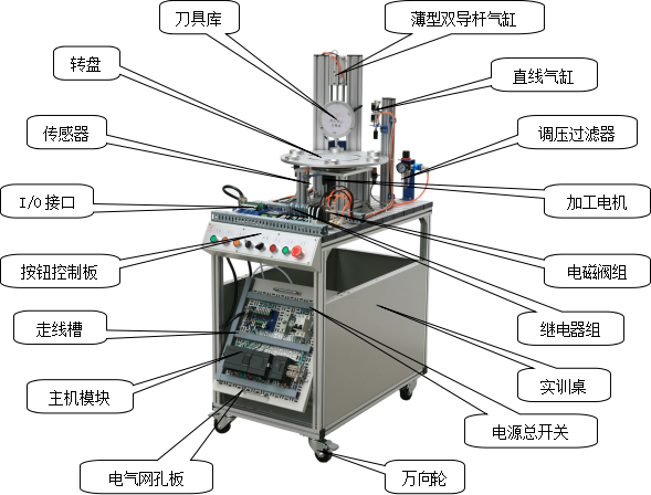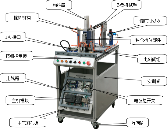 該系統(tǒng)上使用了大量的氣動元件,包括多種電控氣動閥、多種氣動缸、氣動夾爪、真空吸盤、真空發(fā)生器、過濾減速閥等。在學(xué)習(xí)這些氣動元件時,不但可以單獨學(xué)習(xí)每一種分離元件,而且還可以在學(xué)習(xí)時了解各種氣動元件之間,以及氣動元件與其它元件之間,如何配合起來并協(xié)調(diào)進行工作的。