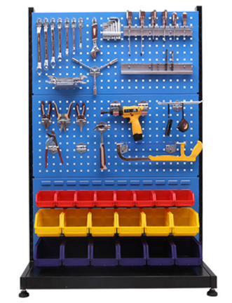 工具架采用3層掛板工具架,立柱采用2.0mm優(yōu)質(zhì)矩形管,掛板采用1.5mm冷軋鋼板制作;掛板為藍色,立柱和底板為黑色,配置鋁合金手柄,方便移動,能夠完成工具的有序掛置與存放,充分利用空間,整潔高效率,環(huán)保無毒。配置專用掛鉤,整體尺寸為:960*375*1450mm(長寬高)。