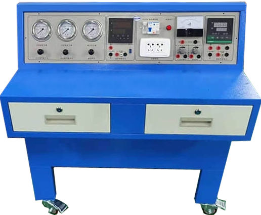 (1)鋼質(zhì)、臺(tái)面不小于1500×700mm,后側(cè)置高于臺(tái)面300mm左右的斜面,便于布置各種輔助儀表等設(shè)備,包括0~0.1MPa壓力表,4~20mA電流表,0.7MPa的氣源壓力表,24VDC100W模塊。臺(tái)內(nèi)置模塊的抽屜,方便替換和放置。4個(gè)腳安裝帶制動(dòng)的萬(wàn)向滑輪,便于實(shí)驗(yàn)臺(tái)移動(dòng)。