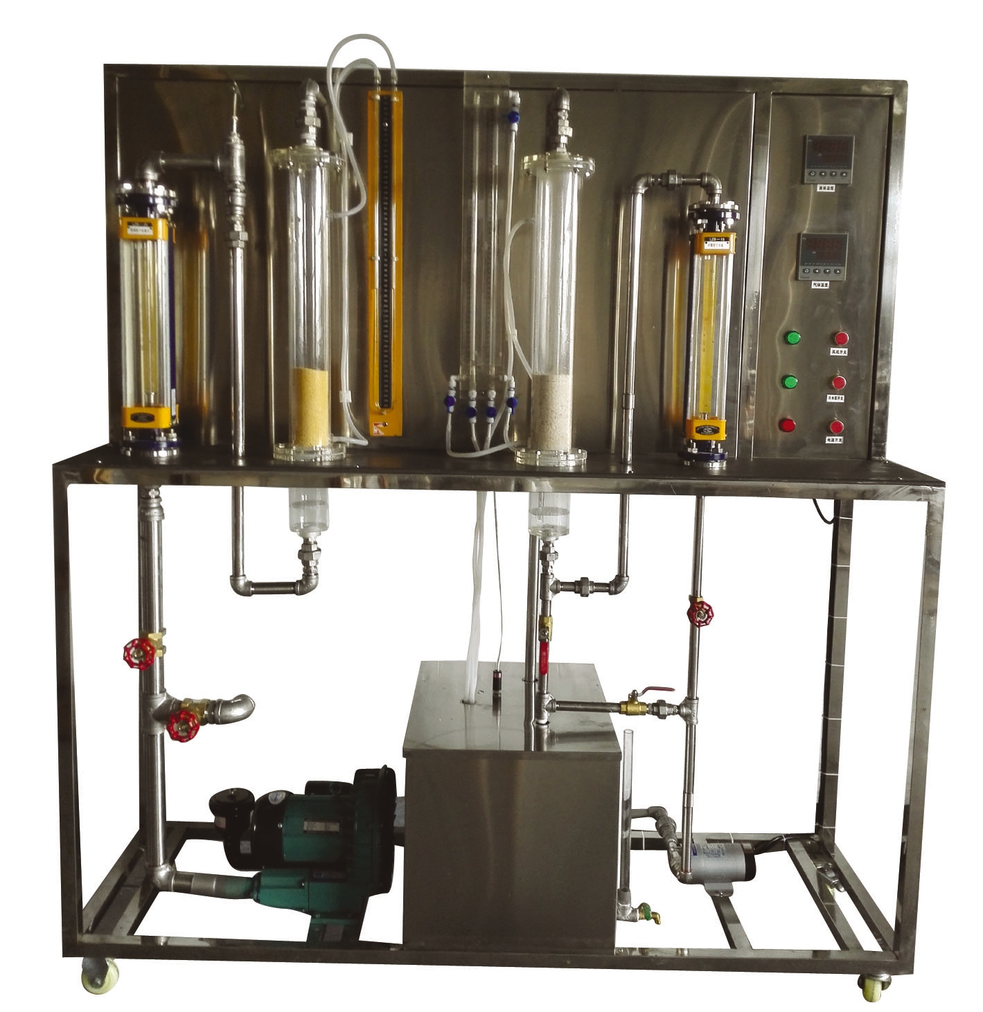 1.水:裝置自帶不銹鋼水箱,連接自來水。實驗時經(jīng)水泵進入流化床后循環(huán)使用。