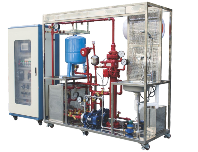 本裝置采用不銹鋼框架開放式結(jié)構(gòu)設(shè)計,主要由生活給水系統(tǒng)、消防給水系統(tǒng)、排水系統(tǒng)和控制系統(tǒng)共四部分組成。