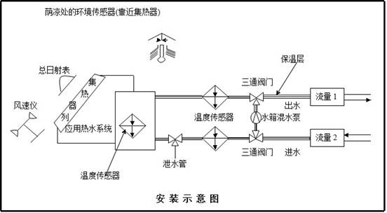 系統(tǒng)執(zhí)行國(guó)標(biāo)GB/T18708 ,GB/T19141,GB/T20095-2006太陽(yáng)熱水系統(tǒng)性能評(píng)定規(guī)范等要求方法測(cè)試(熱性能:日有用得熱量,升溫性能,儲(chǔ)水箱保溫性能等指標(biāo))