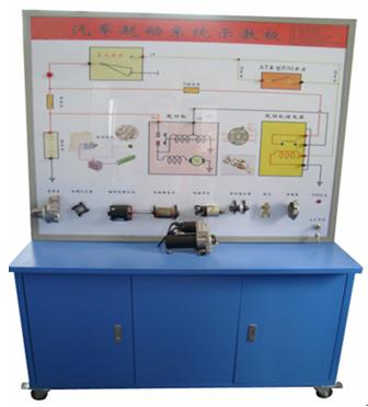 示教板上半部分為起動機的分解零部件,下半部分為實物總成;蓄電池、點火開關、電源總開關、彩色原理與結(jié)構(gòu)圖、故障設置系統(tǒng)、使用說明書等。