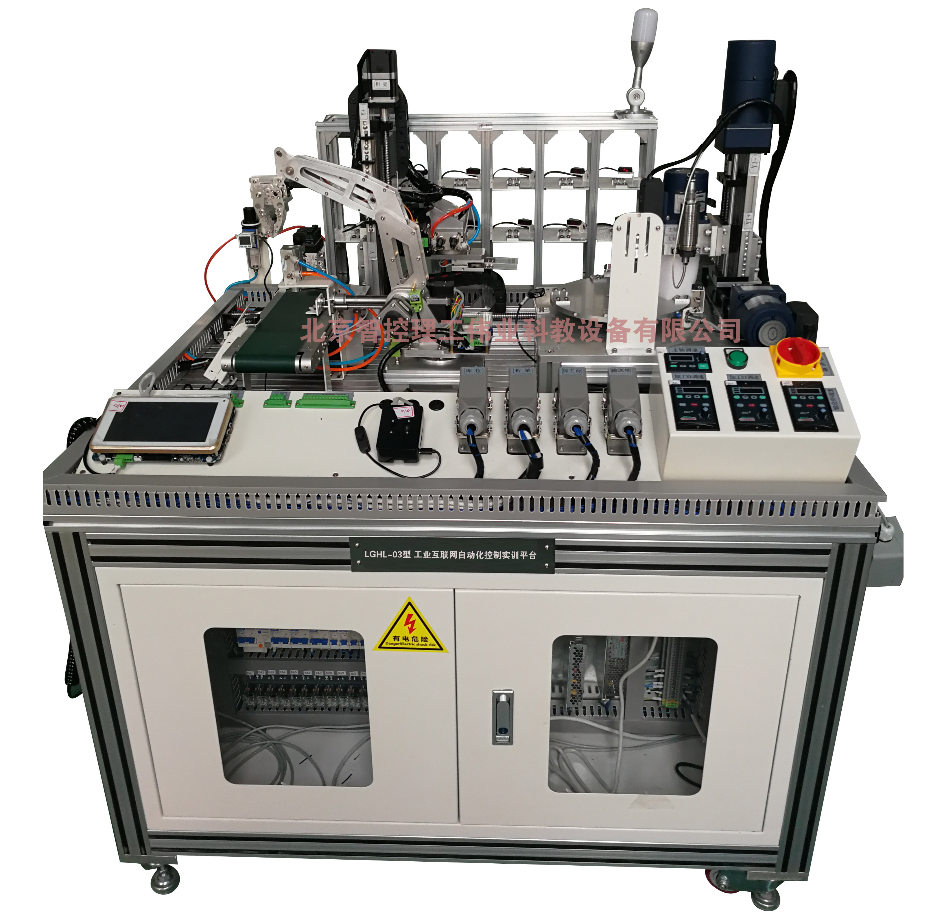 LGHL-03型 LGHL-03型 工業(yè)互聯(lián)網(wǎng)自動(dòng)化控制實(shí)訓(xùn)平臺(tái)涵蓋電氣控制技術(shù)、PLC編程技術(shù)、嵌入式接口技術(shù)、AI機(jī)器視覺技術(shù)、智能網(wǎng)關(guān)技術(shù)、平臺(tái)運(yùn)維技術(shù)等,可以支撐工業(yè)互聯(lián)網(wǎng)、電氣自動(dòng)化、機(jī)電一體化等專業(yè)學(xué)生的工業(yè)設(shè)備認(rèn)知,電氣控制設(shè)計(jì),工業(yè)設(shè)備過程控制、運(yùn)動(dòng)控制,工業(yè)機(jī)器人、視覺檢測(cè)等課程實(shí)訓(xùn)。